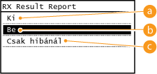 Akkor válassza, ha csak fogadási hiba esetén szeretné kinyomtatni a vételi eredményjelentést.