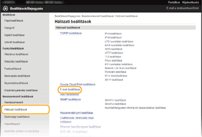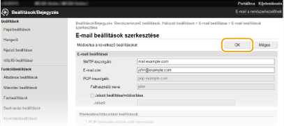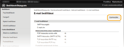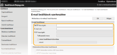 A részletes küldési beállításokat (például az e-mail küldése előtti POP-hitelesítést és a titkosítást) a Távoli felhasználói felületen konfigurálhatja. A szükséges beállításokkal kapcsolatos információkat az internetszolgáltatótól vagy a hálózati rendszergazdától szerezheti be.
