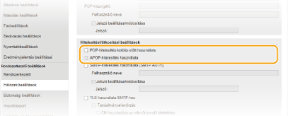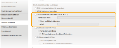 Ha SMTP-hitelesítést állít be (SMTP AUTH), akkor a felhasználók felhasználónév és jelszó szerinti azonosítása az e-mail küldésekor történik.