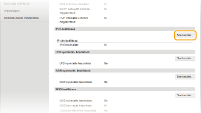 Kattintson a [Szerkesztés] lehetőségre a [IPv6-beállítások] mezőben.