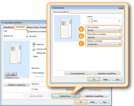 A dokumentumokra információkat, például dátumot, bejelentkezési nevet és oldalszámot nyomtathat, és meghatározhatja, hogy az oldalak mely részén (bal oldalt felül, jobb oldalt alul stb.) jelenjenek meg.