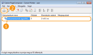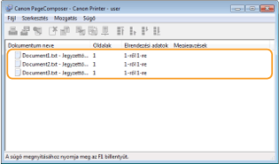 A dokumentumok megjelennek a Canon PageComposer képernyőjén.