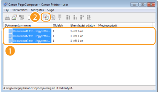 A Canon PageComposer alkalmazással több dokumentumot egyesíthet egyetlen nyomtatási feladatban, amelyet meghatározott nyomtatási beállításokkal kinyomtathat. Ezzel a funkcióval lehetővé válik például, hogy különböző alkalmazásokkal létrehozott dokumentumok minden oldalát ugyanakkora méretű papírra nyomtassa.