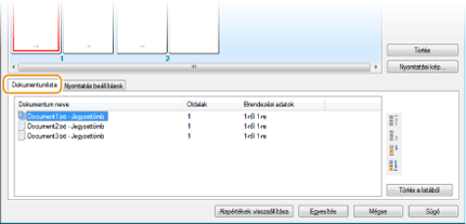 Válassza ki az összevont dokumentumok nyomtatási feladatát a [Dokumentum neve] listában, majd kattintson az