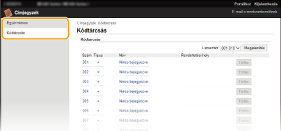 A rendeltetési helyek egyérintéses módon is bejegyezhetők. Ebben az esetben a [Egyérintéses] lehetőségre kattintson a [Kódtárcsás] helyett.