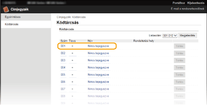 Kattintson a [Szám], [Típus] vagy a [Név] elem alatti szövegeges hivatkozásra a „Nincs bejegyezve” nevű elem esetében.
