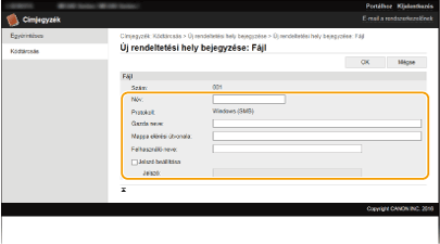 Adja meg a számítógép nevét vagy IP-címét legfeljebb 120 karakter hosszúságban. A számítógépnévhez, ill. az IP-címhez megadható a megosztott mappa elérési útja is (pl. „\\gep\megosztas” vagy „\\192.168.2.100\megosztas”).