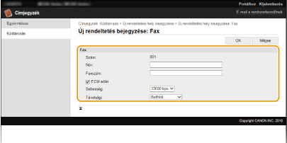 Faxbeállítások) on pontjánál. Mindazonáltal a <Címjegyzék> adataiból végzett beállítások a Címjegyzékbe bejegyzett rendeltetési helyek részletes beállításaihoz vannak engedélyezve.