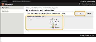 Válassza a [Bejegyzendő rendeltetéstípus] lehetőséget, és kattintson az [OK] gombra.