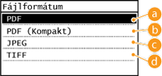 Kiválaszthatja, hogy milyen fájlformátumba történjen a dokumentumok beolvasása (PDF/JPEG/TIFF). PDF-fájl esetén választhatja a kisebb fájlméretet eredményező kompakt PDF-formátumot.