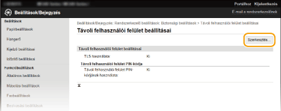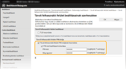 Jelölje be a [Távoli felhasználói felület PIN-kódjának használata] jelölőnégyzetet, és állítsa be a PIN-kódot.