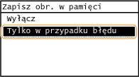 Wybierz opcję <Włącz> lub <Tylko w przypadku błędu>