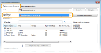 wybierz książkę adresową z listy [Lista książek adresowych].