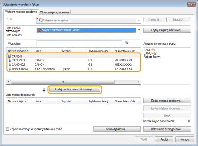 Wybierz odbiorcę i kliknij przycisk [Dodaj do listy miejsc docelowych].