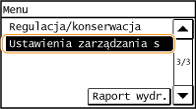 Wszystkie ustawienia z listy związane z ustawieniami zarządzania systemem są opatrzone krótkim opisem. Ustawienia domyślne oznaczone są przy użyciu krzyżyka (  ).