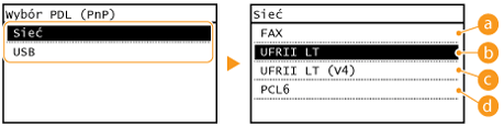 Ustawienie umożliwiające wybór języka opisu strony, dzięki któremu po podłączeniu urządzenia do komputera za pomocą technologii Plug and Play jest ono rozpoznawane jako drukarka obsługująca dany język. Więcej informacji znajduje się w części „Podręcznik instalacji sterownika MF”.