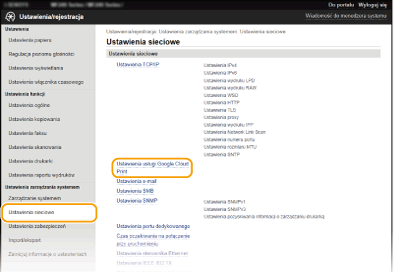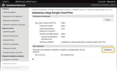 Należy włączyć obsługę technologii Google Cloud Print na urządzeniu. Można również wyłączyć obsługę technologii Google Cloud Print przez urządzenie.