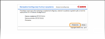Kliknij polecenie [Rozpocznij] dla opcji [Narzędzie konfiguracji funkcji wysyłania].