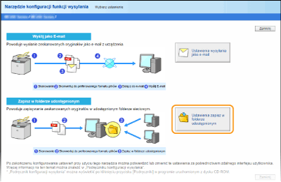 Kliknij polecenie [Rozpocznij] dla opcji [Narzędzie konfiguracji funkcji wysyłania].