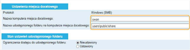 [Stan ustawień udostępnionego folderu]