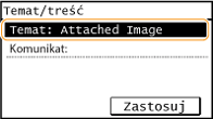 Za pomocą przycisków numerycznych wprowadź temat i dotknij przycisku <Zastosuj>.