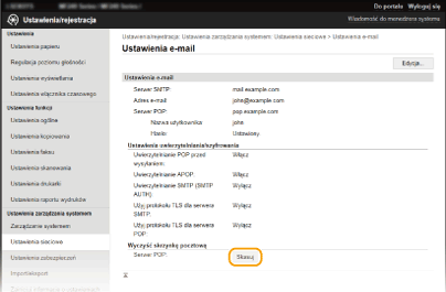 Określanie nazwy nadawcy wiadomości: Zapisz nazwę jednostki (e-mail)