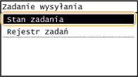 Gdy dla opcji <Wyświetlanie rejestru zadań> wybrano ustawienie <Wyłącz>, dzienniki wysłanych dokumentów są niedostępne. Wyświetlanie rejestru zadań