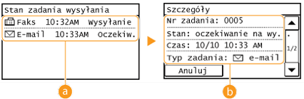 <Szczegóły>Wyświetla szczegółowe informacje dotyczące dokumentu wybranego z listy. W przypadku wyboru wielu odbiorców liczba wybranych pozycji jest wyświetlana na ekranie. Aby sprawdzić szczegóły wielu wybranych odbiorców, dotknij pozycję <Odbiorca>.