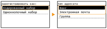 В зависимости от регистрируемого адреса нажмите <Факс>/<Электронная почта>.