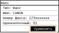 Введите адресата с помощью цифровых клавиш, а затем нажмите <Применить>.
