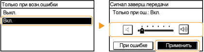 Выберите <Вкл.> (издавать звуковой сигнал) или <Выкл.> (не издавать звукового сигнала).
