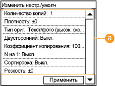 Параметры по умолчанию — это параметры, которые отображаются при включении устройства или нажатии