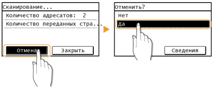 , коснитесь элемента <Отмена> на дисплее или нажмите