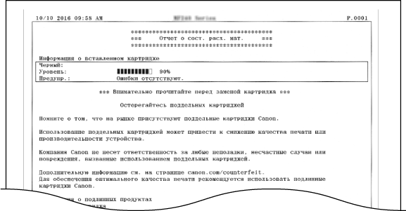 Можно проверить состояние расходных материалов, установленных в аппарате.