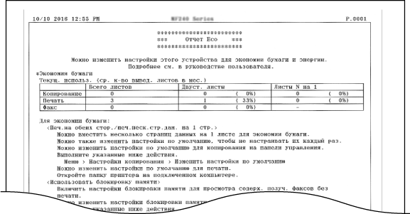 Можно проверить такую информацию, как количество отпечатков в месяц и количество потребленной электроэнергии, а также проверить способы увеличения экономии.