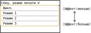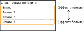 При указании значений <Выкл.> или <Режим 1> на распечатках могут появляться полосы. При выборе <Режим 3> или <Режим 4> контуры могут быть размытыми, а изображения могут казаться слегка зернистыми. Плотность печати уменьшается при изменении параметра с <Выкл.> на <Режим 4>.