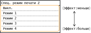 Если на распечатках появляются полосы, измените значение параметра на <Специальный режим печати Z>