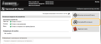 Нажмите [Настройки/Регистрация].