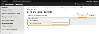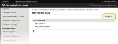 SMB (блок сообщений сервера) представляет собой протокол для общего доступа к ресурсам (например, файлам и принтерам) для нескольких устройств в сети. Аппарат использует SMB для сохранения сканированных документов в общую папку. В зависимости от особенностей сети, возможно, потребуется настроить имя NetBIOS и имя рабочей группы.