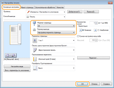 Выберите формат бумаги в [Размер вывода]