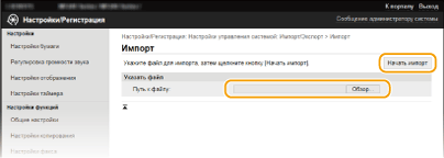 Не используйте аппарат во время экспорта/импорта.Перед экспортом/импортом убедитесь, что ни один документ не находится в процессе печати.