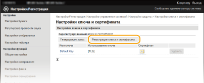 Пару ключей невозможно удалить, если ключи в данный момент используются с какой-то целью, например если под пунктом [TLS] отображается «[IEEE 802.1X]» или «[Использование ключа]». В этом случае отключите функцию или заменить пару ключей перед их удалением. Предустановленный сертификат CA удалить невозможно.