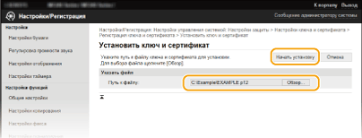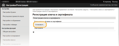 Нажмите [Настройки ключа и сертификата] для установки пары ключей или [Настройки сертификата CA] для установки сертификата CA.
