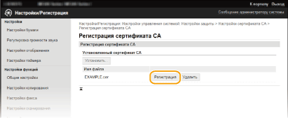 Щелкните [Регистрация ключа и сертификата] или [Регистрация сертификата СА].