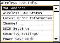 ![]() Параметри <Wireless LAN Status> і <Latest Error Information> можна переглянути, натиснувши клавішу
