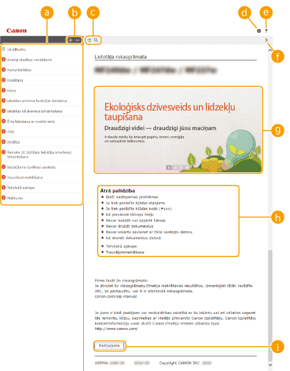 Noklikšķiniet, lai parādītu informāciju par to, kā skatīt Lietotāja rokasgrāmata, kā veikt meklēšanu, kā arī aplūkotu citu informāciju.