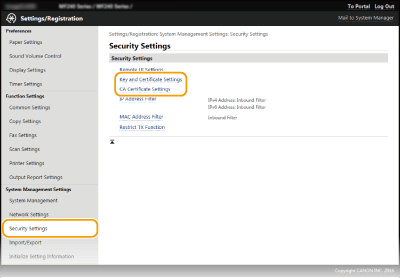[Key and Certificate Settings] vai [CA Certificate Settings].
