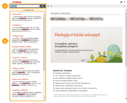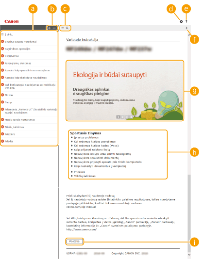 Spustelėkite, kad būtų rodoma, kaip peržiūrėti vadovą Vartotojo instrukcija, atlikti paiešką ir kita informacija.