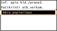 Kai kuriais atvejais, įvykus klaidai, pateikiami nurodymai, kaip reaguoti į klaidą. Norėdami išspręsti problemą, vykdydami ekrane pateikiamus nurodymus. Toliau kaip pavyzdys pavaizduotas ekranas, rodomas užstrigus popieriui (