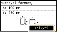 Įveskite <Y> krašto ilgį ir bakstelėkite <Taikyti>.